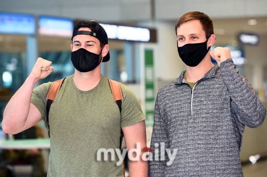 [마이데일리 = 인천 곽경훈 기자] 기아 프레스턴 터커(왼쪽)과 투수 다니엘 멩덴이 스프링캠프 합류를 위해 18일 오후 인천국제공항 2터미널로 입국한뒤 포즈를 취하고 있다.