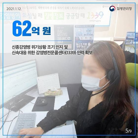 신종감염병 위기상황 조기 인지 및 신속대응 위한 감염병전문콜센터(1339) 인력 확보