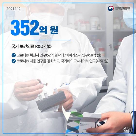·코로나19 대응 연구를 강화하고, 국가바이오빅데이터 연구(42억 원)