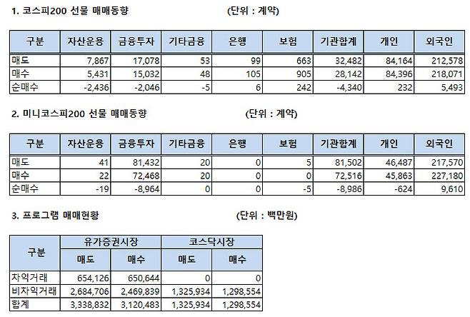 [표]주가지수선물 투자자별 매매동향(1/18)