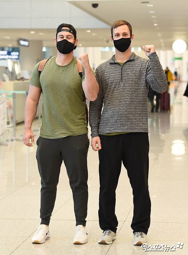 [엑스포츠뉴스 인천공항, 윤다희 기자] KIA 타이거즈의 외국인 타자 터커와 새 외국인 투수 멩덴이 18일 오후 인천국제공항을 통해 입국했다.