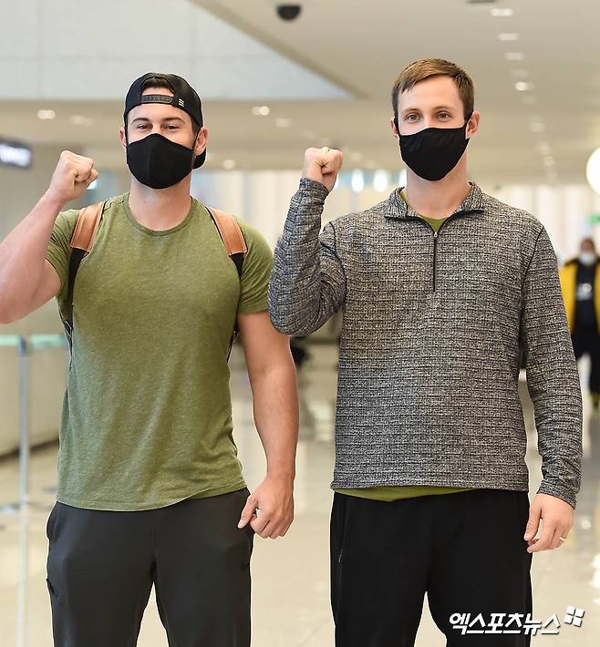 [엑스포츠뉴스 인천공항, 윤다희 기자] KIA 타이거즈의 외국인 타자 터커와 새 외국인 투수 멩덴이 18일 오후 인천국제공항을 통해 입국했다.