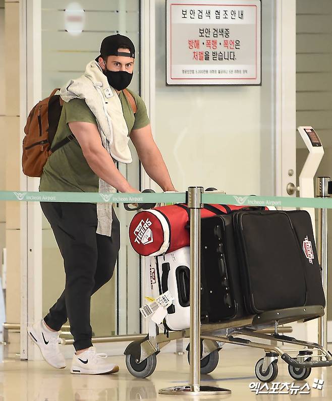 [엑스포츠뉴스 인천공항, 윤다희 기자] KIA 타이거즈의 외국인 타자 터커가 18일 오후 인천국제공항을 통해 입국했다.