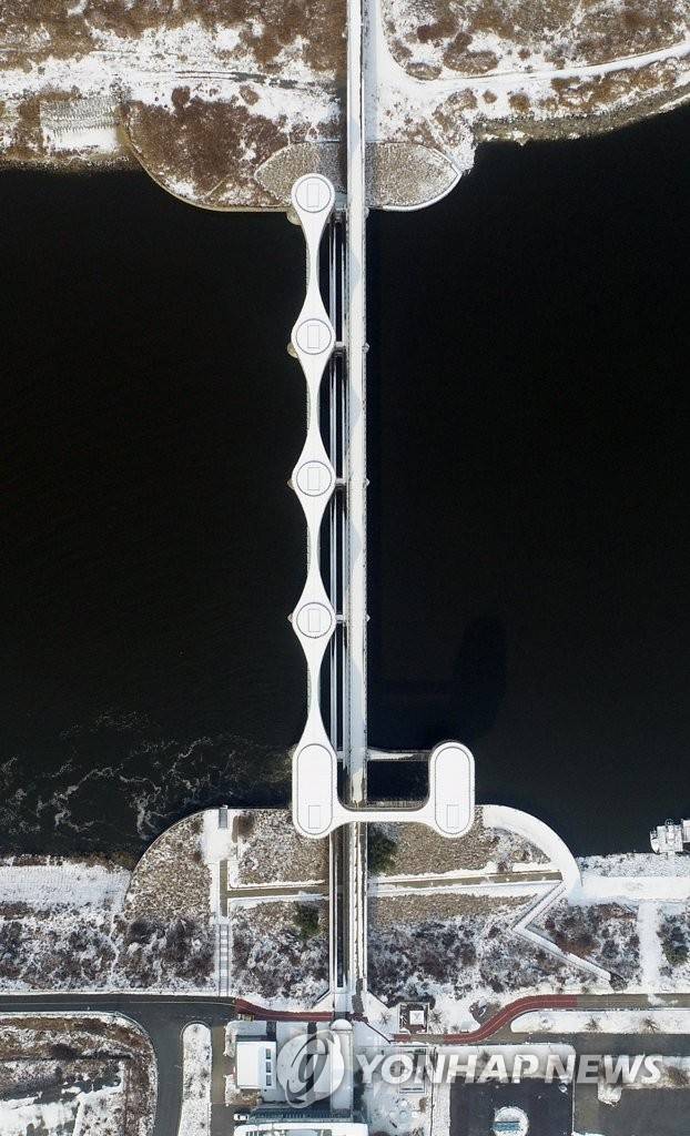 (광주=연합뉴스) 천정인 기자 = 대통령 직속 국가물관리위원회는 18일 영산강 죽산보를 해체하는 내용이 포함된 '금강·영산강 보 처리방안'을 의결했다. 사진은 이날 전남 나주시 다시면 죽산보의 모습. 2021.1.18