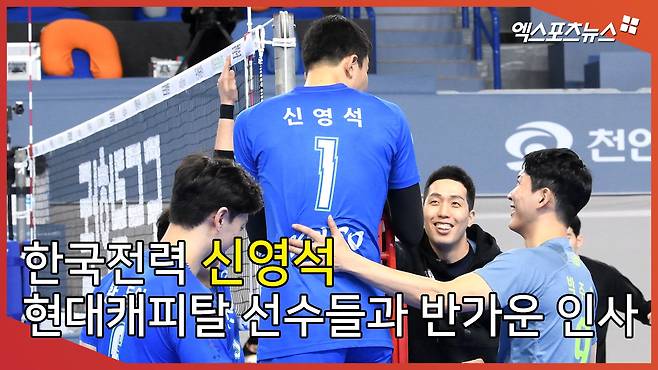 한국전력 신영석, 언제 만나도 반가운 현대캐피탈 선수들[엑's 영상]