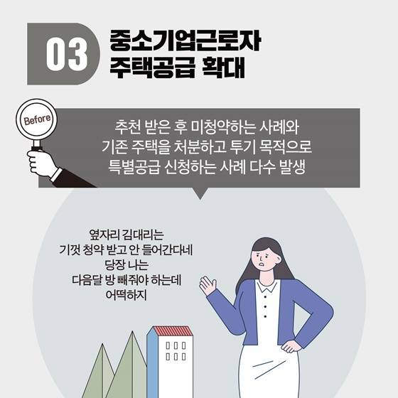 Before : 추천 받은 후 미청약하는 사례와 기존 주택을 처분하고 투기 목적으로 특별공급 신청하는 사례 다수 발생