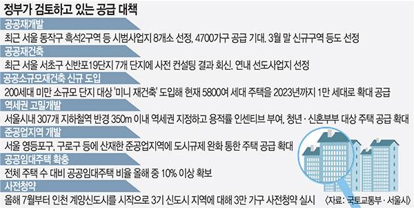 하지만 새로운 내용은 없었다. 문 대통령이 주문한 특단의 공급 대책은 서울 도심 내 역세권·저층 주거지 고밀 개발과 준공업지역 개발, 공공재개발·재건축 등을 통한 주택 공급으로 이미 변창흠 국토교통부 장관이 설 전 발표하겠다고 예고한 내용이다. 정부는 이미 지난해 8·4 대책을 통해 태릉골프장 등 신규택지 개발과 공공재개발·재건축 등을 통해 총 ‘13만2000가구+α’의 주택을 서울 권역에 공급하겠다고 밝힌 바 있다.