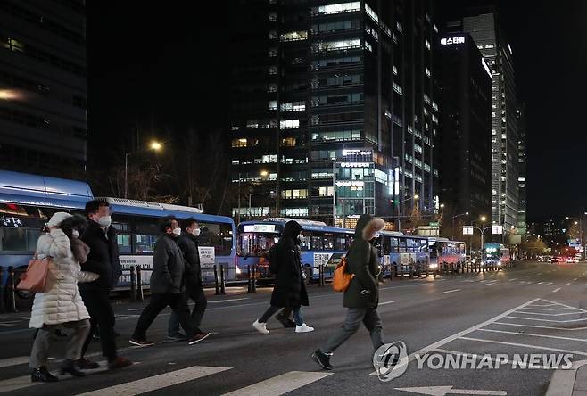 (서울=연합뉴스) 황광모 기자 = 서울 지역에 기온이 급강하 한 18일 저녁 서울 종로구 광화문에서 시민들이 두꺼운 외투를 입고 종종걸음으로 이동하고 있다.