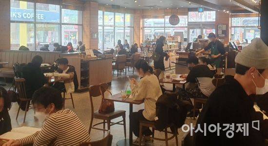 이날 광주시 남구 한 대형 프랜차이즈 카페 매장은 마치 집합금지가 풀리기만을 기다렸다는 듯 손님들로 북적였다.