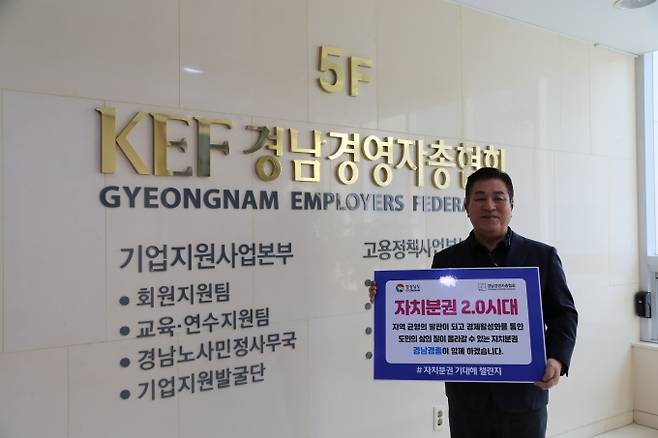 [창원=쿠키뉴스] 강종효 기자 = 경남경영자총협회 강태룡 회장은 18일 ‘#자치분권 기대해 챌린지’에 동참했다.