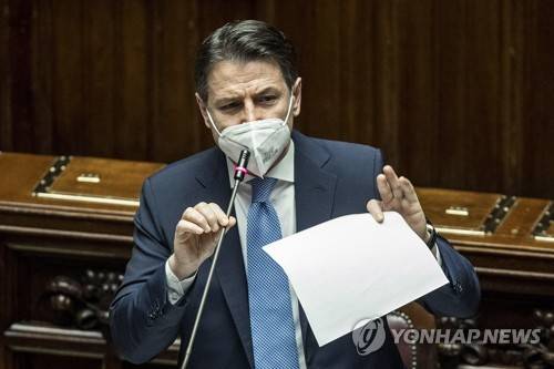 epa08945999 Italian Premier Giuseppe Conte addresses the Lower House of the Parliament in Rome, Italy, 18 January 2021. Conte appealed to the Lower House for support in order to keep his government alive after Matteo Renzi's Italia Viva (IV) party triggered a crisis last week by pulling his party's ministers from the cabinet. EPA/ROBERTO MONALDO / POOL