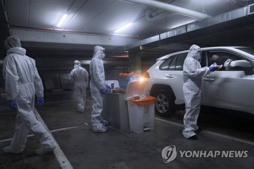 People are tested for the coronavirus by healthcare workers at a drive-through testing site during a nationwide lockdown to curb the spread of the virus, In Modiin, Israel, Monday, Jan. 18, 2021. (AP Photo/Oded Balilty)