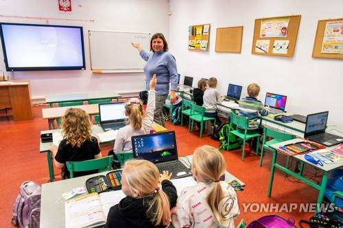 epa08946041 Children in one of the primary schools in Bydgoszcz, north Poland, 18 January 2021. From now on, students of grades 1-3 of primary schools and special primary schools are returning to schools. The return will take place under the sanitary regime. EPA/Tytus Zmijewski POLAND OUT