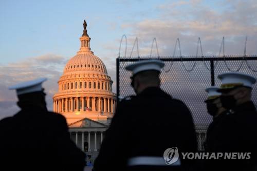 epa08946050 Members of the United States military arrive ahead of an inauguration rehearsal at the Capitol, in Washington, DC, USA, 18 January 2021. Biden will be sworn-in as the 46th president on 20 January. EPA/WILL OLIVER