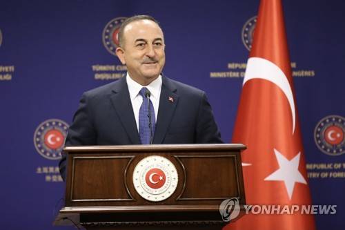 epa08946065 A handout photo made available by the Turkish Foreign Ministry Press Office shows Turkish Minister of Foreign Affairs Mevlut Cavusoglu and German Foreign Minister Heiko Maas (not pictured) during a press conference after their meeting in Ankara, Turkey, 18 January 2021. EPA/CEM OZDEL / TURKISH FOREIGN MINISTERY PRESS OFFICE HANDOUT HANDOUT EDITORIAL USE ONLY/NO SALES