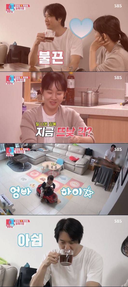 아들 우찬이가 낮잠을 자러 들어가자, 아내 박민정은 "우찬이 동생을 갖고 싶어서 준비를 했어"라며 말을 꺼냈다. 이에 조현재가 "무슨 준비를 했어?"라고 묻자 박민정은 "마음과 몸의 준비를 했어"라며 수줍게 웃어 분위기가 후끈해졌다.