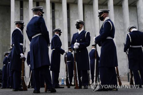 epa08946112 Members of the United States military arrive ahead of a rehearsal for the arrival of President-elect Joe Biden in US Capitol in Washington, DC, USA, 18 January 2021. Biden will be sworn-in as the 46th president on 20 January 2021. EPA/WILL OLIVER