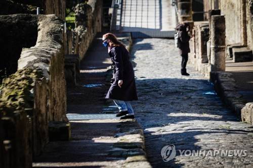 epa08946146 Few visitors at the Herculaneum excavations on the day of its reopening, amid the second wave of the Covid-19 Coronavirus pandemic, in Naples, Italy, 18 January 2021. EPA/CESARE ABBATE