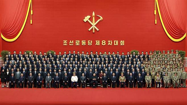 김정은 북한 노동당 총비서가 8차 노동당 대회와 최고인민대회에서 새로 뽑힌 당·내각 간부들과 기념사진을 찍었습니다.