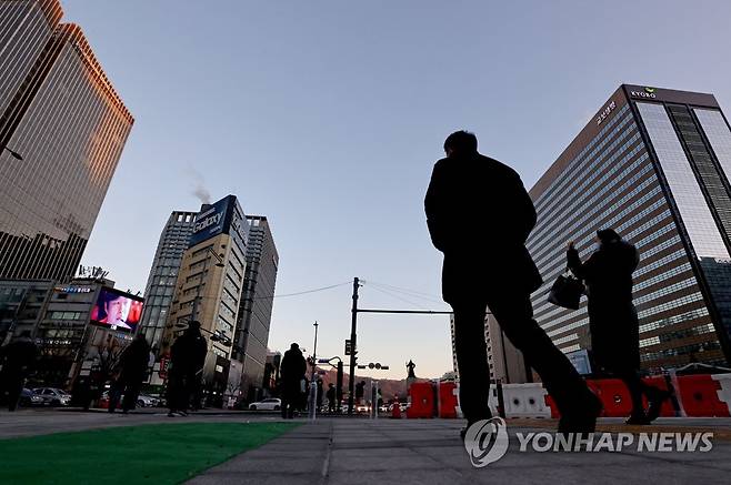 (서울=연합뉴스) 류영석 기자 = 서울 최저 기온이 영하 13도를 기록 중인 19일 오전 서울 광화문 광장에서 시민들이 버스에 내려 걸어가고 있다. 2021.1.19