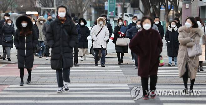 (서울=연합뉴스) 류영석 기자 = 서울 최저 기온이 영하 13도를 기록 중인 19일 오전 서울 광화문 광장에서 시민들이 길을 건너고 있다. 2021.1.19