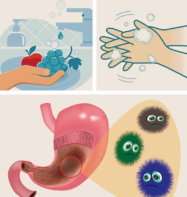 노로바이러스에 감염되지 않으려면 굴, 조개 등 익히지 않은 어패류와 생선을 먹지 말고, 냉장보관한 과일이나 채소도 흐르는 물에 여러 번 씻어 먹는 것이 좋다. 개인위생도 중요하다. 바깥 활동 후에는 30초 이상 비누나 세정제를 이용해 손가락, 손등까지 깨끗이 씻고 흐르는 물로 헹궈야 한다. 화장실을 사용한 후나 음식을 조리하기 전에도 마찬가지다. 화장실, 변기, 문손잡이 등은 가정용 염소 소독제로 닦는다.