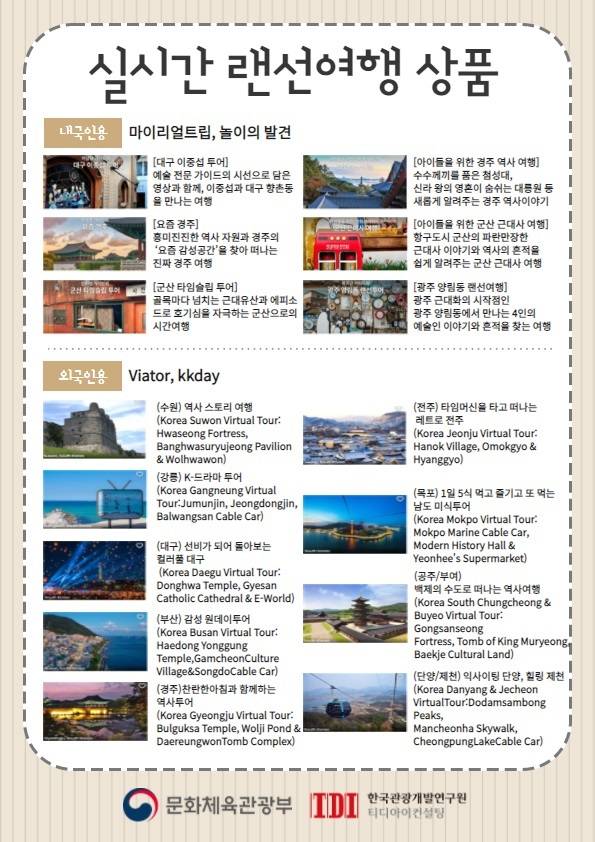 *외국인용 랜선여행상품 지역: 수원, 강릉, 대구, 부산, 경주, 전주, 목포, 공주·부여, 단양·제천