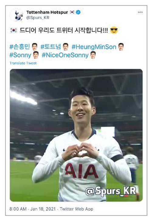 손흥민 뛰는 토트넘, 한국 트위터 계정 오픈