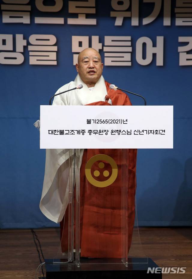 [서울=뉴시스]대한불교 조계종 총무원장 원행스님이 19일 온라인 신년 기자회견을 하고 있다. 2021.01.19. (사진=대한불교조계종 제공) photo@newsis.com