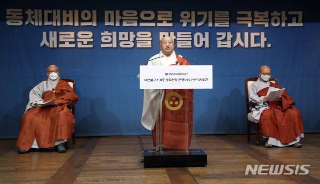 [서울=뉴시스]대한불교 조계종 총무원장 원행스님이 19일 온라인 신년 기자회견을 하고 있다. 2021.01.19. (사진=대한불교조계종 제공) photo@newsis.com