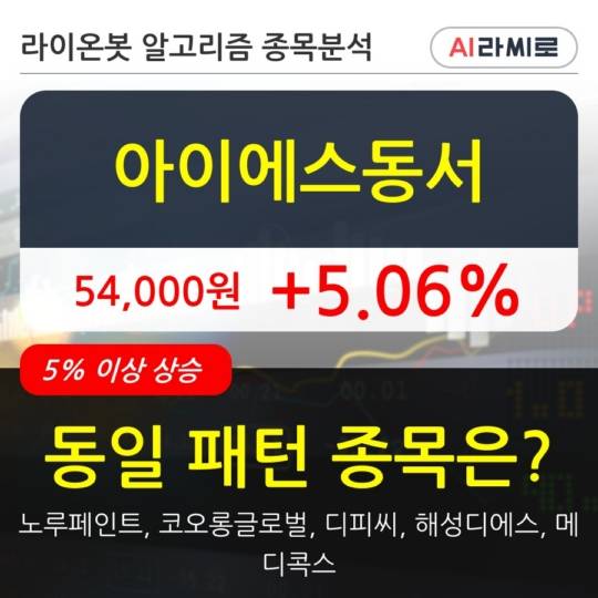 이 시각 거래소에서 아이에스동서 이외에도 노루페인트(5.99%), 코오롱글로벌(6.25%), 디피씨(29.72%), 해성디에스(5.49%), 메디콕스(5.37%) 등이 상승세를 보이고 있다.