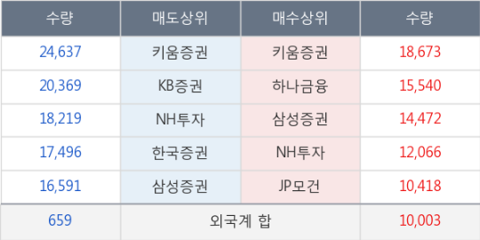 13시 20분 잠정집계에 따르면, 외국인이 아이에스동서를 9,065주 순매수 중이다.
