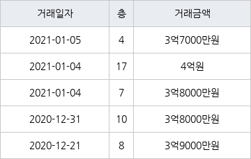 [이 기사는 조선비즈와 아티웰스가 공동으로 개발해 서비스하는 로봇 기사입니다.]국토교통부 실거래가 공개시스템에 따르면 지난 2021년 1월 4일 경기도 용인시 기흥구 상갈동 금화마을주공3단지 7층 전용면적 59㎡형이 3억8000만원에 거래됐다.