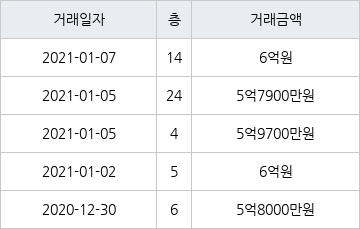 지난 2021년 1월 7일 같은 면적형인 14층 물건이 6억원에 실거래된 것과 비교해 같은 가격이다.