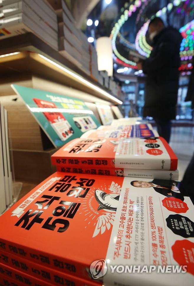 (서울=연합뉴스) 임헌정 기자 = 새해 주식 및 투자 열풍이 거센 가운데 19일 서울의 한 대형 서점에서 시민들이 관련 서적을 보고 있다. 2021.1.19