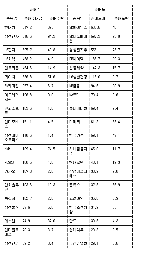 [표] 거래소 외국인 순매수도 상위종목(19일)