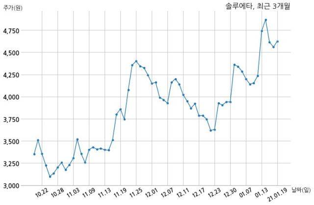 한편, 솔루에타는 장 마감 이후 해당 기업공시를 발표했으며 오늘 종가가 4,625원, 거래량은 211,810주로, 직전 거래일 대비 65원(+1.43%) 상승했다.