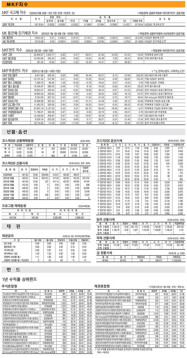 [표] 주요 증시 지표 (1월 20일)
