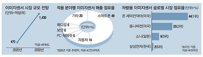 차량용 이미지센서는 특성상 다른 이미지센서에 비해 높은 성능을 요구하고 제품 하나에 필요한 센서 개수도 많다. 자율주행차 운행 시 차의 사방을 감시해야 하고 그 영상을 실시간으로 촬영·분석해야 하기 때문이다. 또 오작동이 발생하면 탑승자 생명과 직결되는 사례가 많아 높은 수준의 신뢰성을 요구하고 사용 환경과 수명 등에서도 까다로운 조건을 충족해야 한다.
