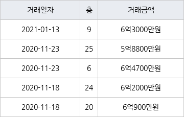 국토교통부 실거래가 공개시스템에 따르면 지난 2021년 1월 13일 인천광역시 남동구 간석동 간석 래미안자이아파트 9층 전용면적 119㎡형이 6억3000만원에 거래됐다. 지난 2021년 1월 13일 같은 면적형인 9층 물건이 6억3000만원에 실거래된 것과 비교해 같은 가격이다.