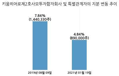 덕산테코피아는 키움히어로제2호사모투자합자회사 및 특별관계자의 지분율이 7.84%에서 4.84%로 변동했다고 19일 공시했다.