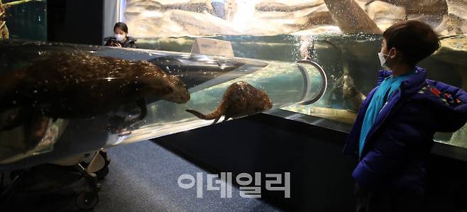 [이데일리 방인권 기자] 19일 오후 경기 수원시 영통구 아쿠아플라넷 광교를 찾은 시민들이 다양한 해양 생물을 만나보고 있다.
