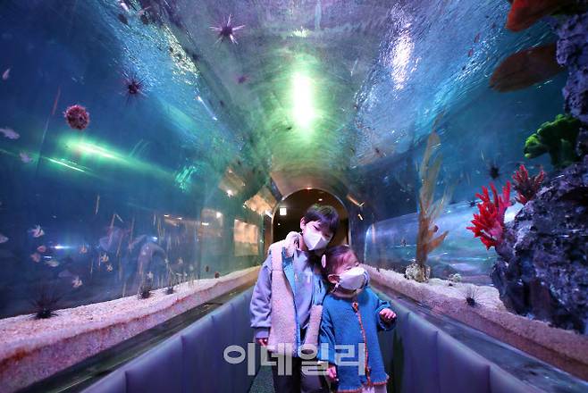 [이데일리 방인권 기자] 19일 오후 경기 수원시 영통구 아쿠아플라넷 광교를 찾은 시민들이 다양한 해양 생물을 만나보고 있다.