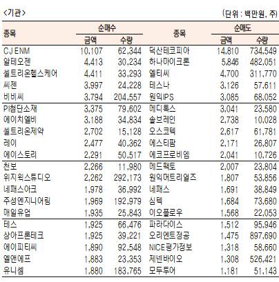 - [표]주간 코스닥 기관·외국인·개인 순매수·도 상위종목(1월 11일~15일)