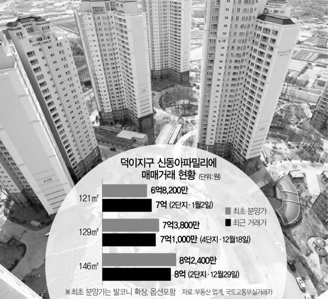 19일 국토교통부 실거래가 시스템에 따르면 덕이지구 '하이파크시티신동아파밀리에' 2단지 전용 121㎡는 지난해 12월 28일 7억 1,000만 원에 거래된 데 이어 이달 2일 7억 원에 거래됐다.
