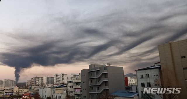 플라스틱 제품이 불에 타면서 치솟은 검은 연기는 북서풍을 타고 이곳에서 30여 ㎞ 떨어진 보은 상공에까지 길게 띠가 형성됐다.