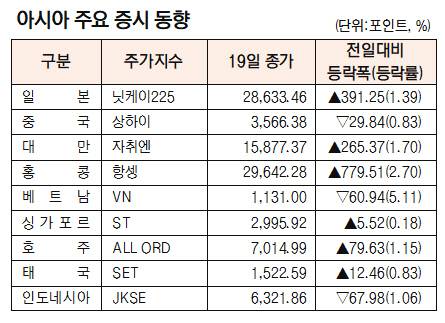 [표]아시아 주요 증시 동향(1월 19일)