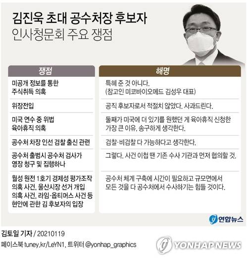 [그래픽] 김진욱 초대 공수처장 후보자 인사청문회 주요 쟁점