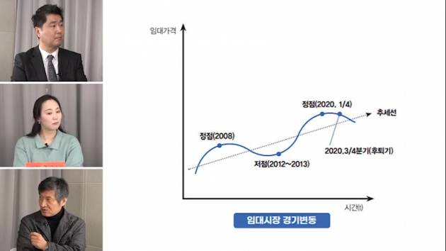 그런데 이게 데이터는 불안감은 있어요. 왜냐면 임대시장 데이터를 보면 2020년 초에 임대료가 꺾여서 어떻게 보면 내려가는 것을 보여주고요. 임대료 말고도 공실률도 계속 올라와서 12~13%까지 올라왔고 꺾이는 모양을 아직 안보이고 있어요. 특히 중요한 건 1층 공실, 이게 임대료에서 많이 차지하잖아요. 그것이 조금 코로나 이전 수준과 이후 수준에서는 1층 공실률은 그래도 유지하는 편인거 같아요 그래도 이것도 불안한 면은 놓여져 있어요. 임대시장의 불안성, 금리가 다시 올라갈 가능성 이게 조금 불안감으로 작용하는데 올해는 확실한 건 매매가격이 시장의 상황을 봤을 때 올라갈, 상승할 가능성은 충분히 있다. 그렇지만 임대시장은 금방 회복할 가능성은 낮다.