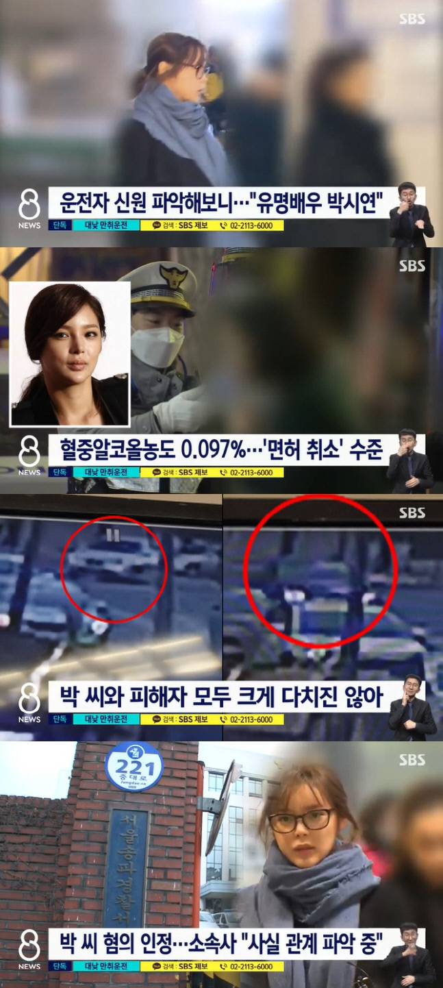 19일 SBS ‘8NEWS’ 단독 보도에 따르면 지난 17일 오전 11시 30분께 서울 송파구에서 교통사고 발생했다. 가해 차량의 운전자는 박시연으로 음주 상태였다. 그의 혈중 알코올농도는 면허 취소 수준인 0.097%였다.